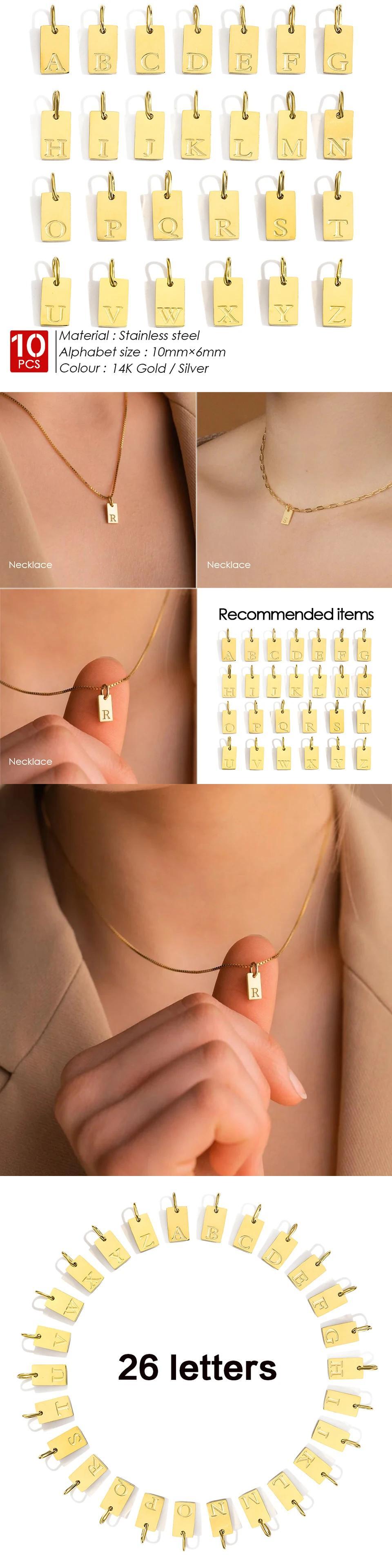 送料無料 Emanco 10 個アルファベットチャーム Anhänger für Halsketten Edelstahl Schmuck DIY gravierte Schriftzug Accessoires Damen Schmuck AE6677688820446768259