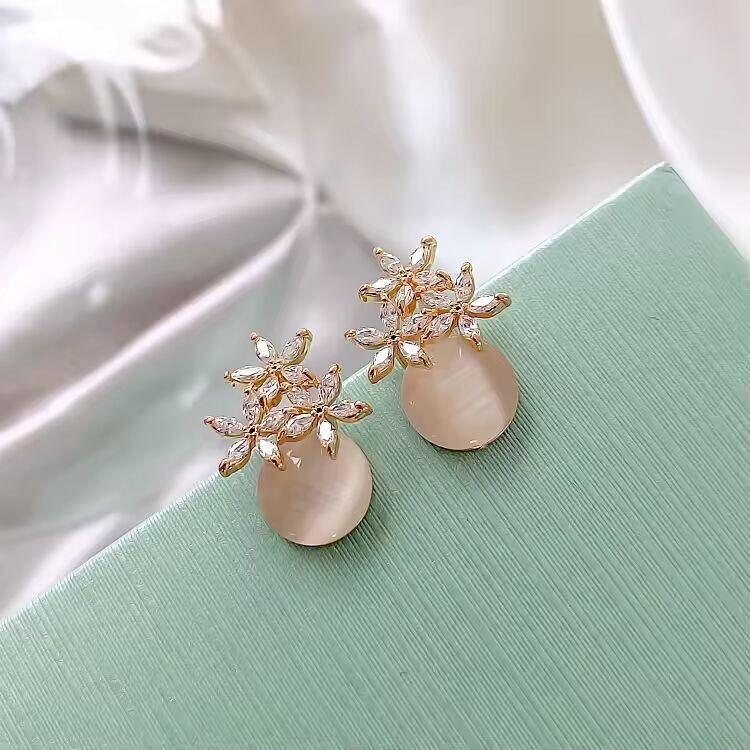 【送料無料◎】 花のラインストーンオパールスタッドピアス女性用小さな絶妙な甘い多用途高度なイヤリングチャームジュエリーギフト卸売