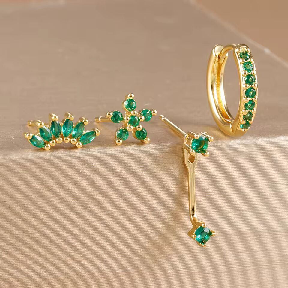 【送料無料◎】 4 個ステンレス鋼サークルハギーフープイヤリングセット女性のためのゴールドカラーのユニークなジルコンフラワースタッドイヤリングピアスジュエリー