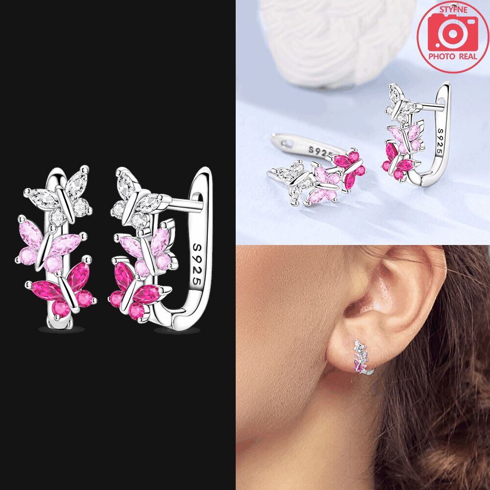 【送料無料◎】 蝶のイヤリング オリジナル 925シルバー ピンクのリボン ハート ジルコン スター フラワー スタッドピアス レディース ジュエリー ギフト 恋人 バレンタインデー セット