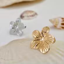 不規則なフォルムが光を複雑に反射し、唯一無二の表情を演出します。ゴールドカラーの華やかな煌めきは、シンプルなコーディネートのアクセントとして圧倒的な存在感を放ちます。 #フラワーイヤリング #大ぶりピアス #モードファッション