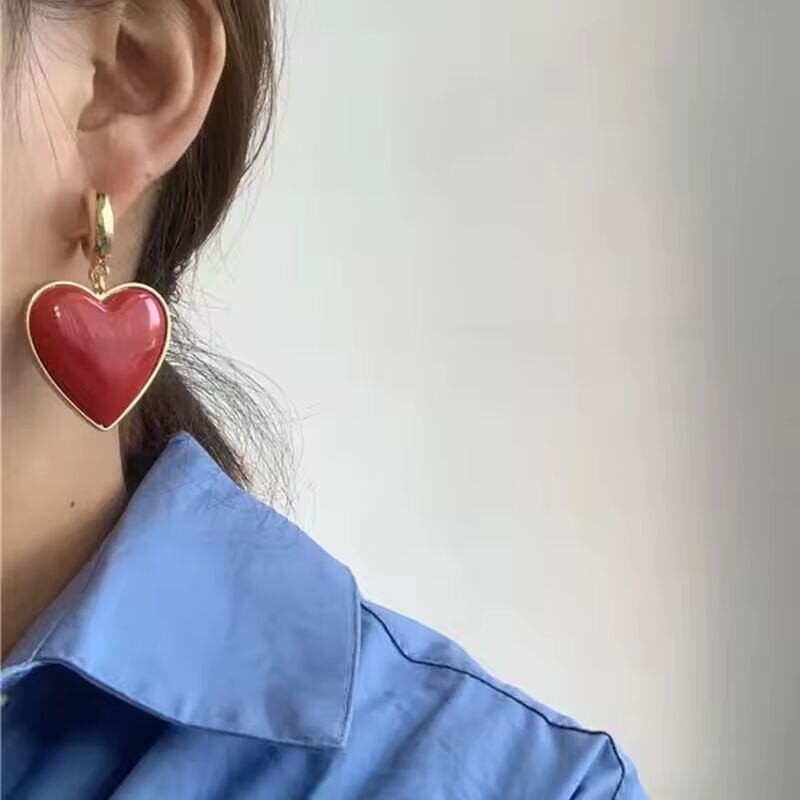 【送料無料◎】 大きなハート型イヤリング レディース レッドレジン ラブ メタル ドロップ ポスト イヤースタッド ヴィンテージ クラシックスタイル ガールズ アクセサリー パーティーギフト C1006