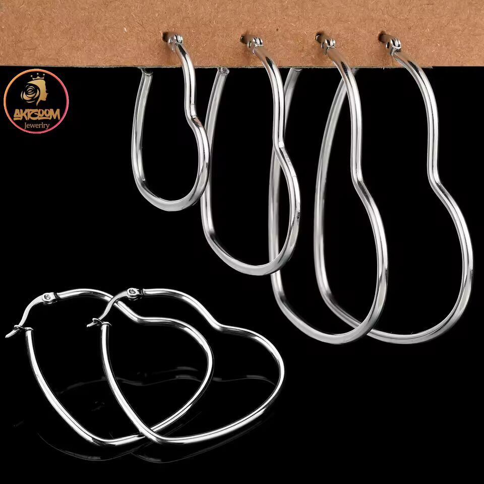 【送料無料◎】 Akizoom-女性と女の子のためのステンレス鋼のハート型イヤリング,リング,ハート型,パンク,パーティージュエリー,誕生日プレゼント,新しいコレクション
