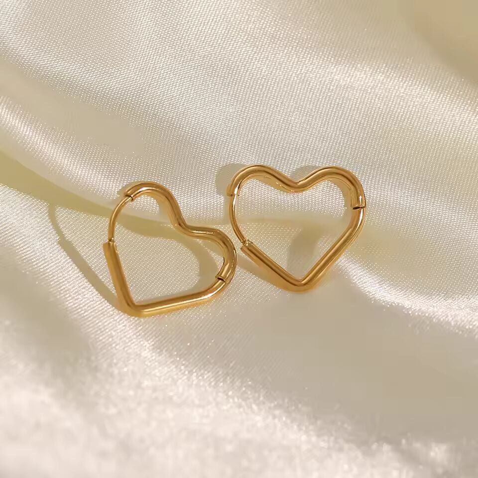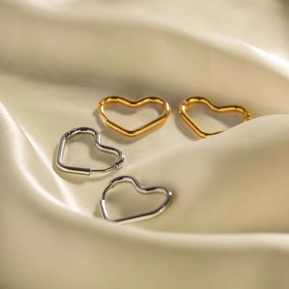 【送料無料◎】 Uworld 高光沢ミニマリスト 18K ゴールドメッキステンレス鋼シンプルなハートデザイン可憐なフープイヤリング変色しない女性用