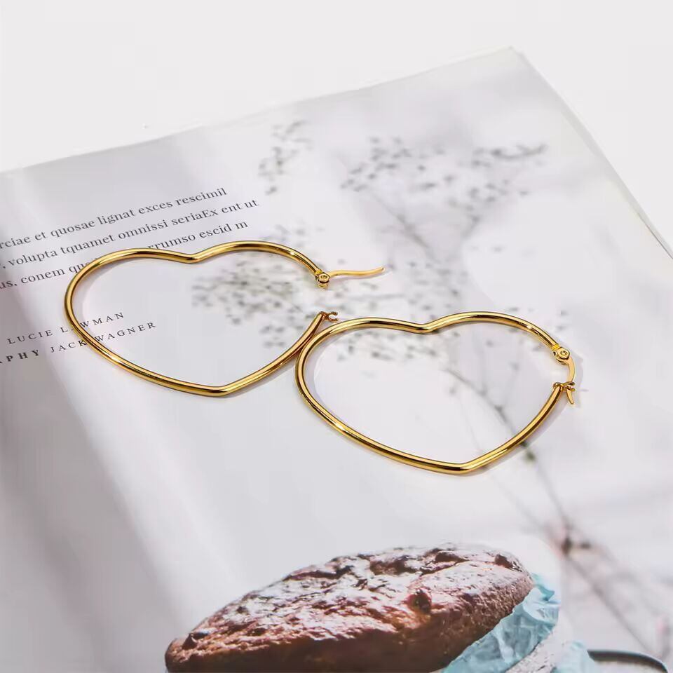 【送料無料◎】 女性のための大きなハート型のフープピアス,滑らかで誇張されたゴールドカラー,ステンレス鋼,ジュエリーギフト,ドロップシッピング,1ペア