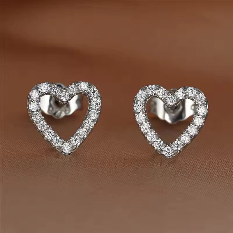 【送料無料◎】 上品な女性のクリスタルハートイヤリングブラックローズゴールドシルバーカラーのスタッドピアスシンプルなホワイトジルコンウェディングジュエリー女性のための