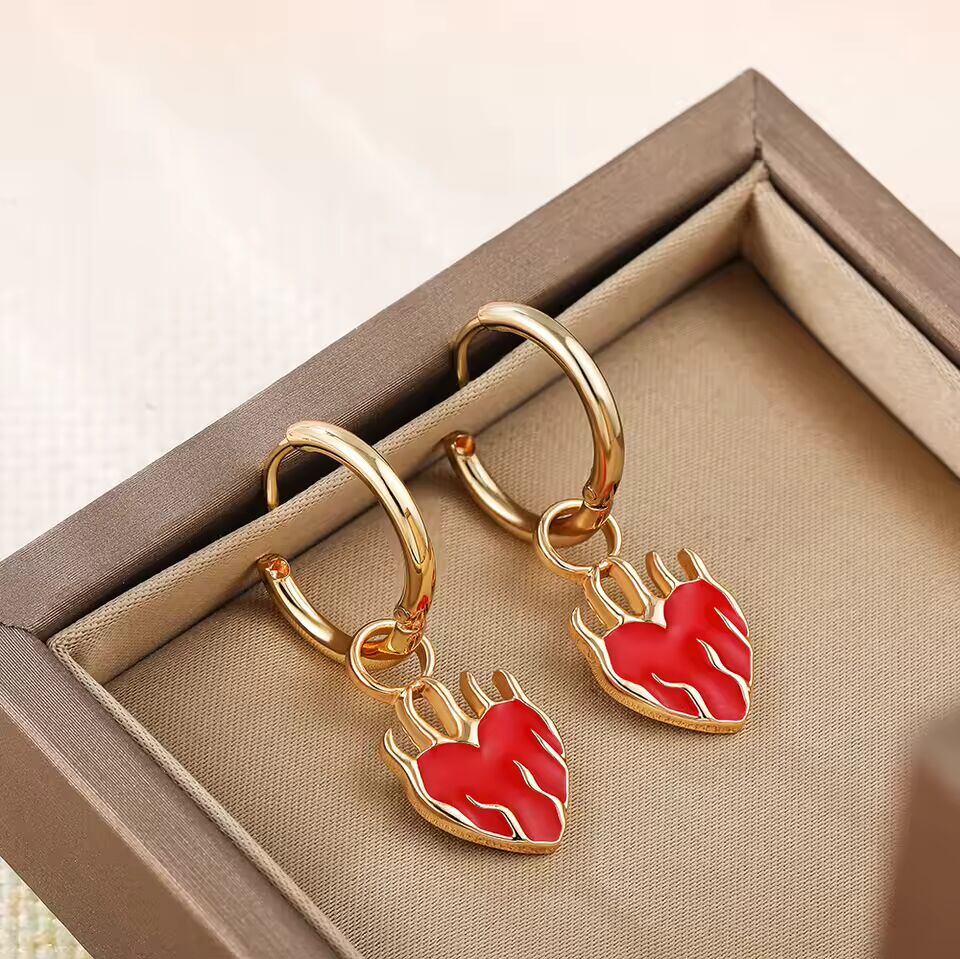 【送料無料◎】 チャーム付きペンダント付きイヤリング,ハート型のペンダント,パンクスタイル,ステンレス鋼,小さな円,流行のジュエリー,女性へのギフト,赤