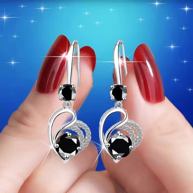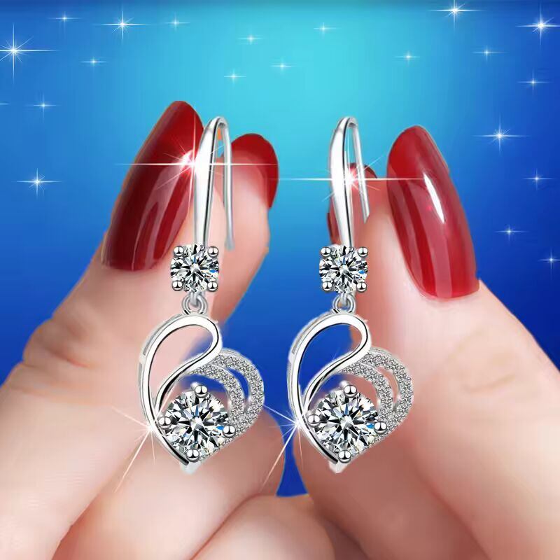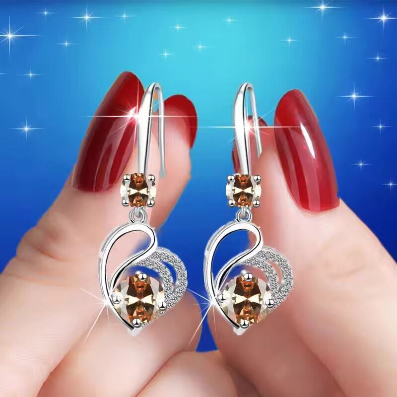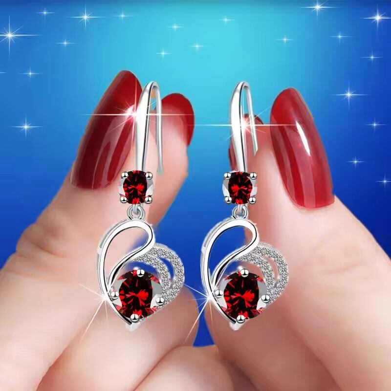 【送料無料◎】 かわいい女性ブルーラブハートブラブライヤリングクラシックシルバーカラーの結婚式レインボークリスタルラウンドストーンジュエリー女性のための
