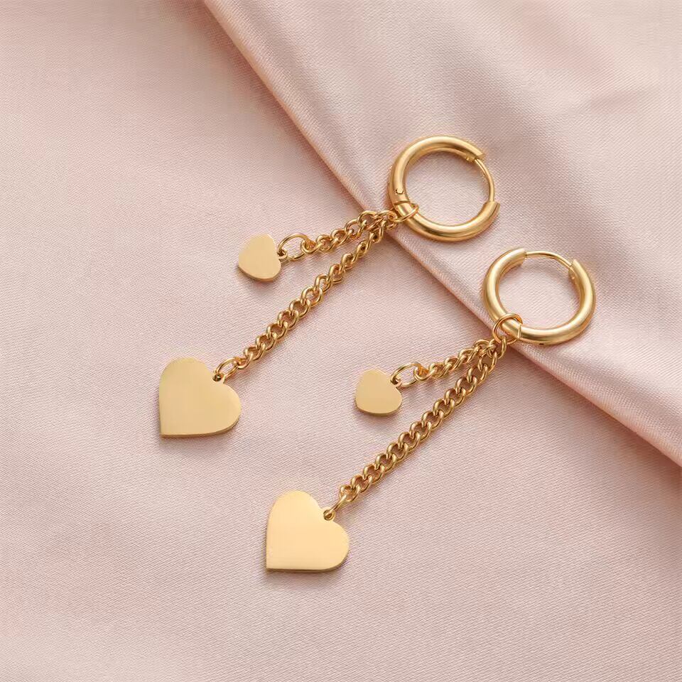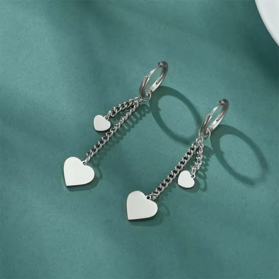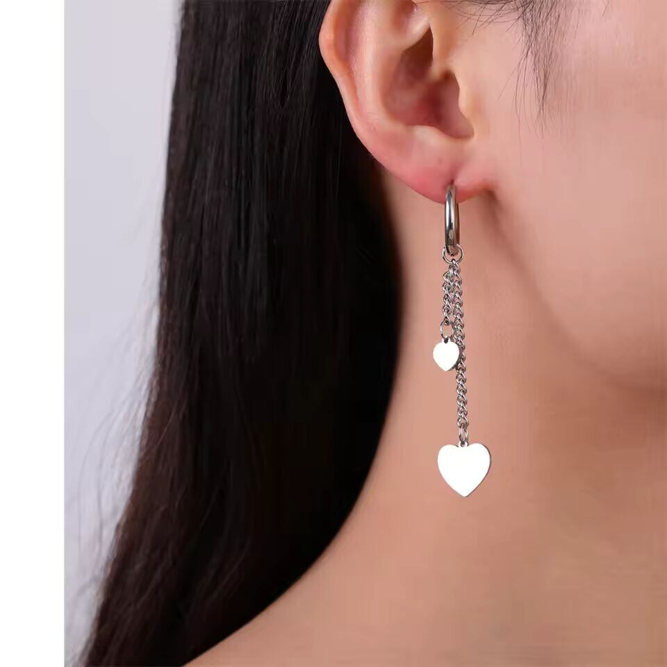 【送料無料◎】 女性のためのミニマリストのステンレス鋼のイヤリング,ハート型のペンダント,ロングイヤリング,2愛の心,エレガントなジュエリー,2023
