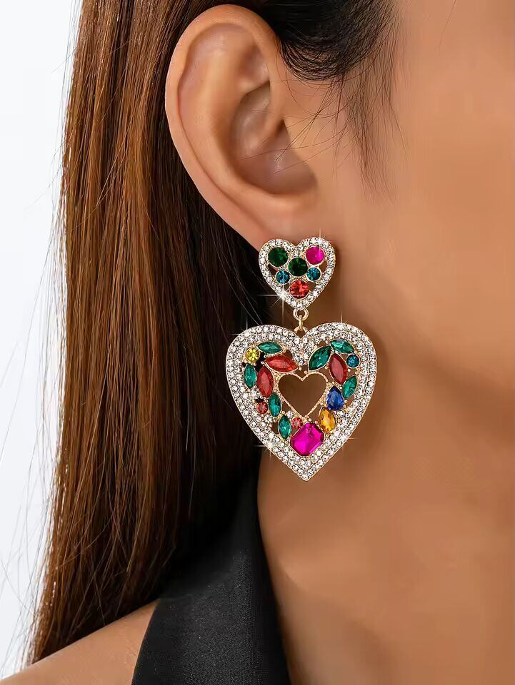 【送料無料◎】 ファッショナブルでゴージャスなバレンタインデーの新しいカラフルな中空ハートイヤリング1組、女性用、デート用の目を引くアクセサリー、バレンタインデーの着用に適しています。