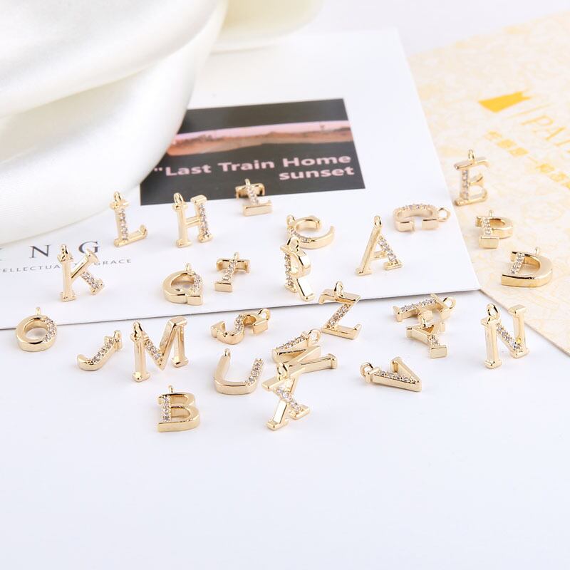 ◎【送料無料】縦カン付き アルファベット パーツ イニシャル チャーム ストーン アクセサリーパーツ ハンドメイド 英語