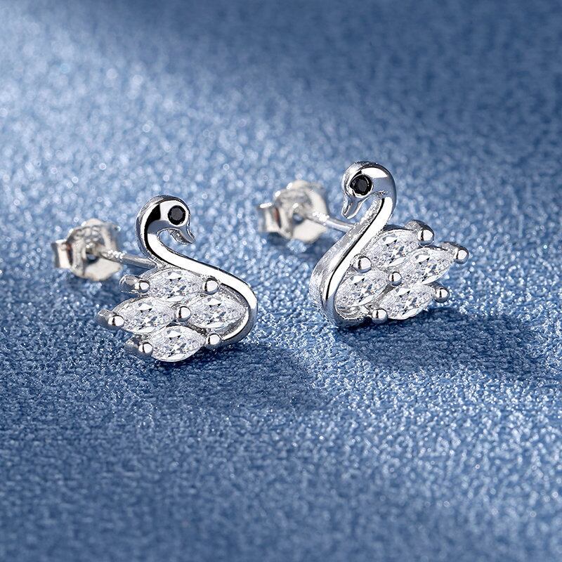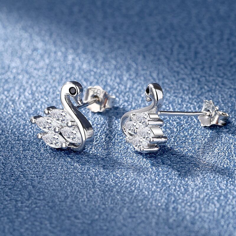 ◎【送料無料】レディース ピアス アクセサリーパーツ 白鳥 ハンドメイド デコパーツ シルバー スワン 上品 ポストピアス