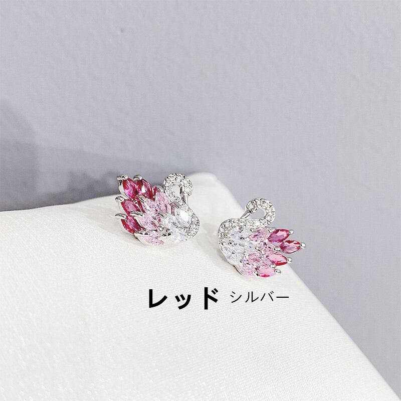 ◎【送料無料】スワン ピアス アクセサリー 白鳥 ストーン クリスタル レディース キャッチピアス グラデーション