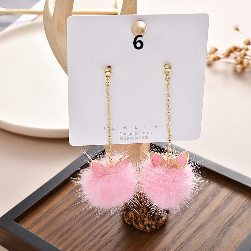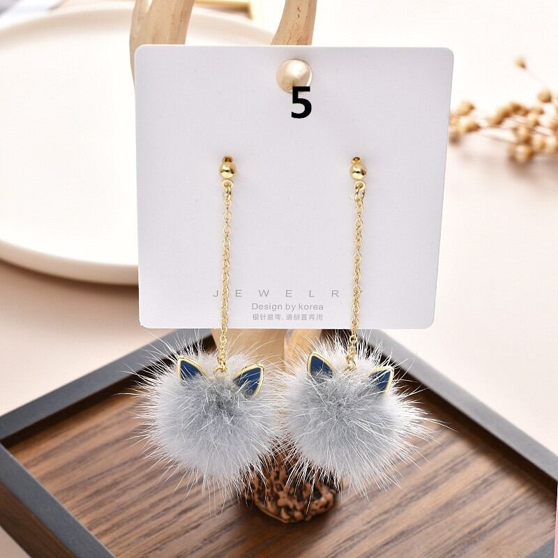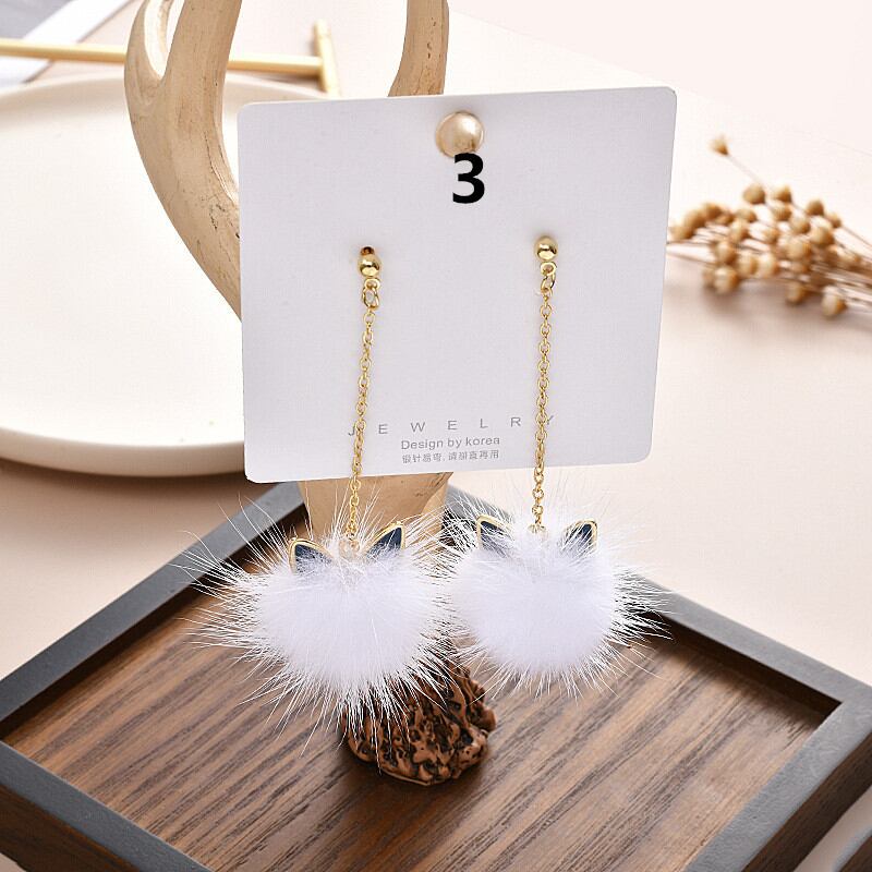 ◎【送料無料】ピアス 秋冬 アクセサリー ジュエリー 猫耳 ファーボール ボンボンチャーム ぽんぽん レディース チェーン