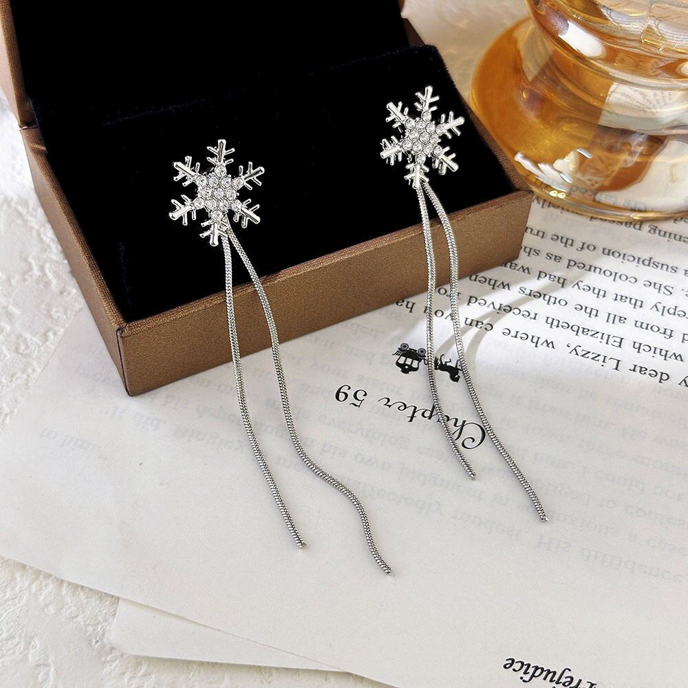 ◎【送料無料】雪の花 ロングチェーンピアス アメリカンビアス キュービック ジルコニア 揺れる チェーンピアス 冬 大人