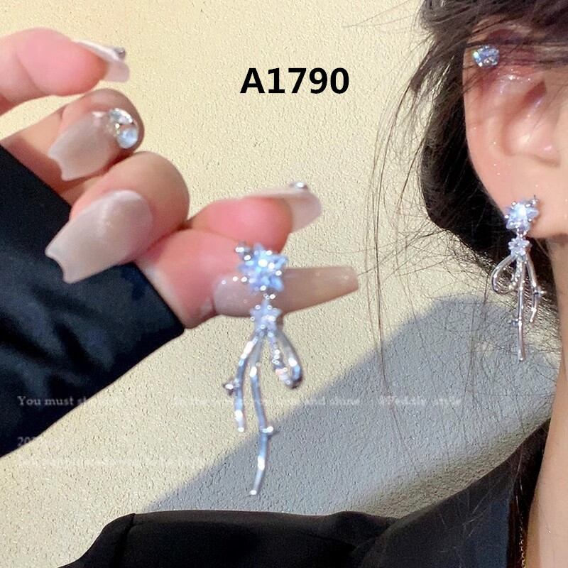 華奢なチェーンから零れ落ちたジルコニアが耳元で揺れ輝く、女性らしいデザインのピアス。