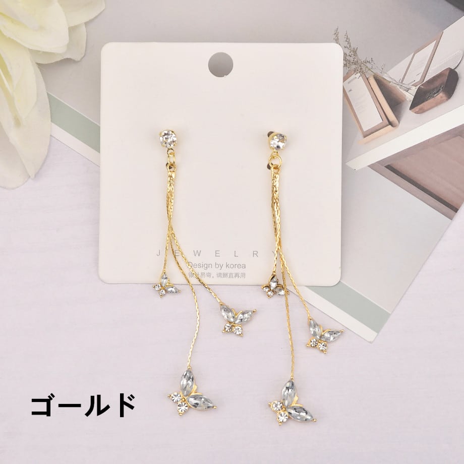 ◎【送料無料】蝶々 ロングチェーンピアス キュービック ジルコニア 揺れる チェーンピアス ロングピアス 揺れるピアス