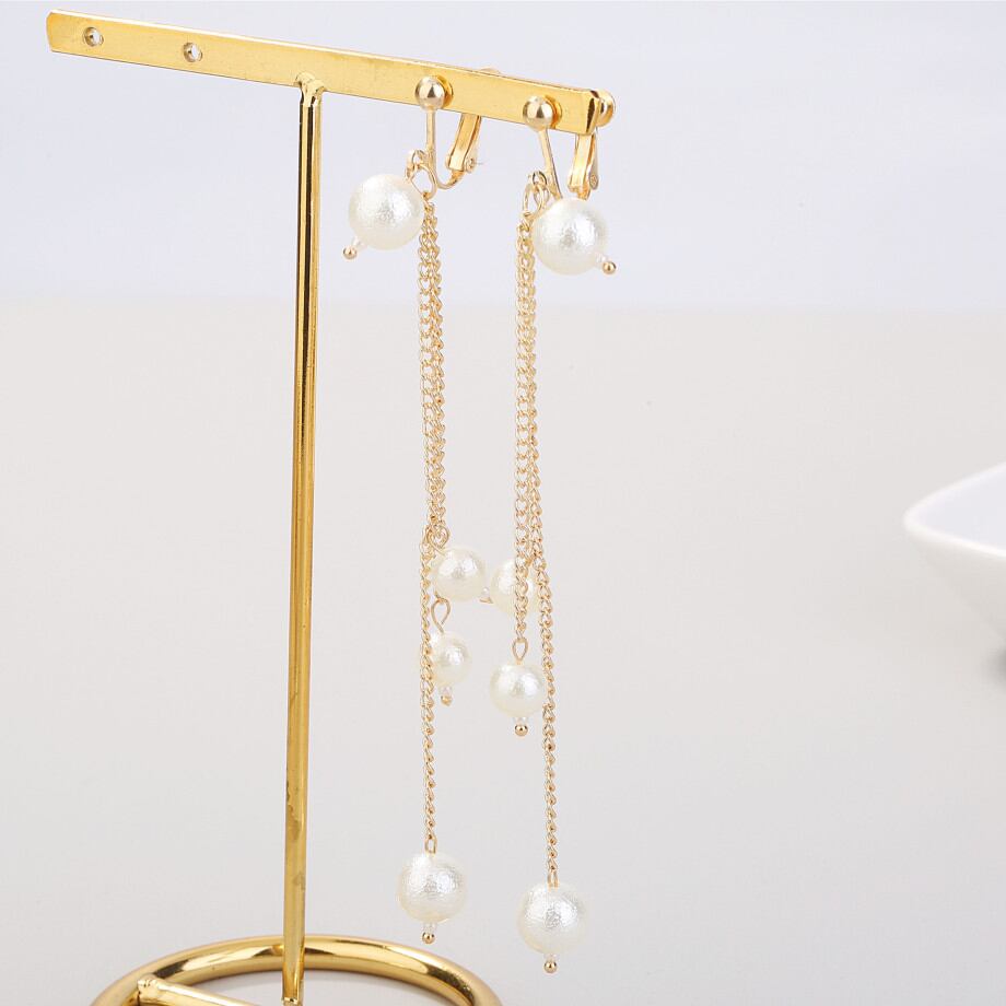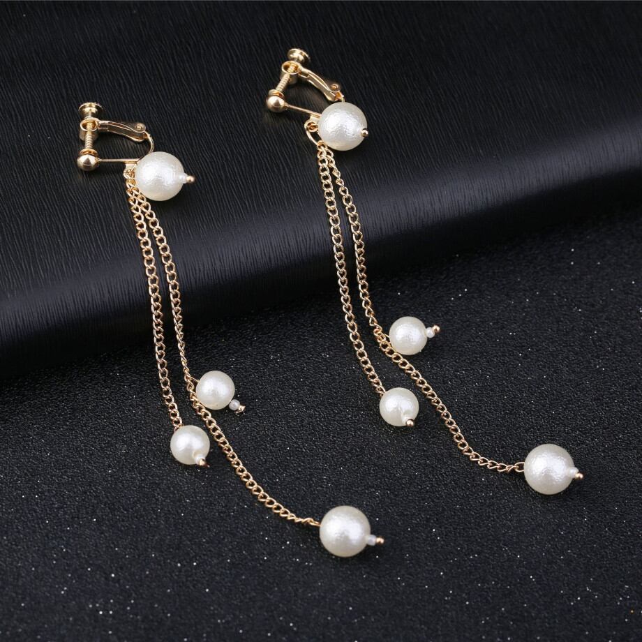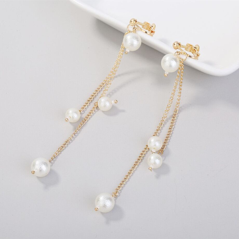 ◎【送料無料】イヤリング ノンホールピアス 揺れる パール 大人 上品 華奢 レディースイヤリング チェーン ロング 女性