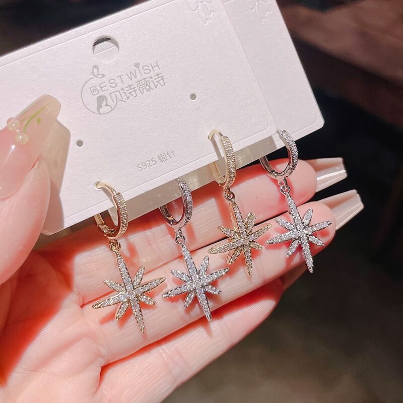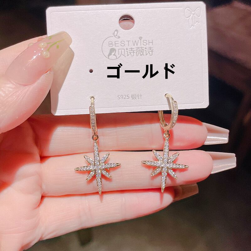 ◎【送料無料】フープピアス サークル ピアス リングピアス 星 キュービックジルコニア ラインストーン 金 銀 スター