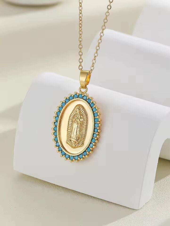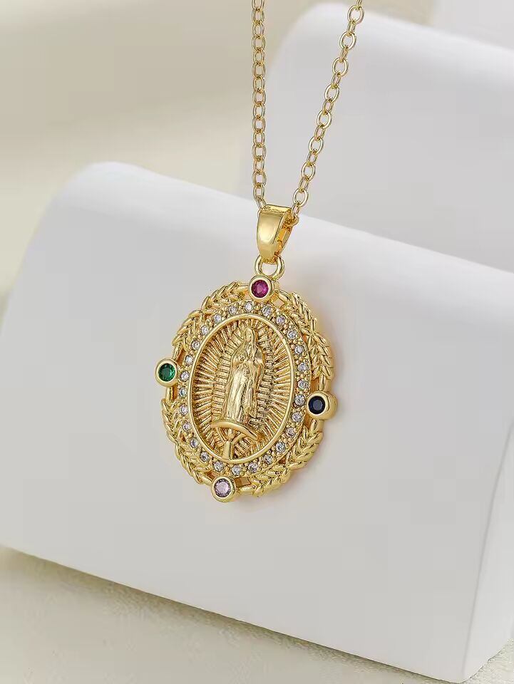 【送料無料◎】 ヨーロッパとアメリカのパーソナライズされたデザイン、マイクロ象嵌ジルコンを使用したカラフルな宗教的なファッションのサンタ マリア シリーズ ネックレス