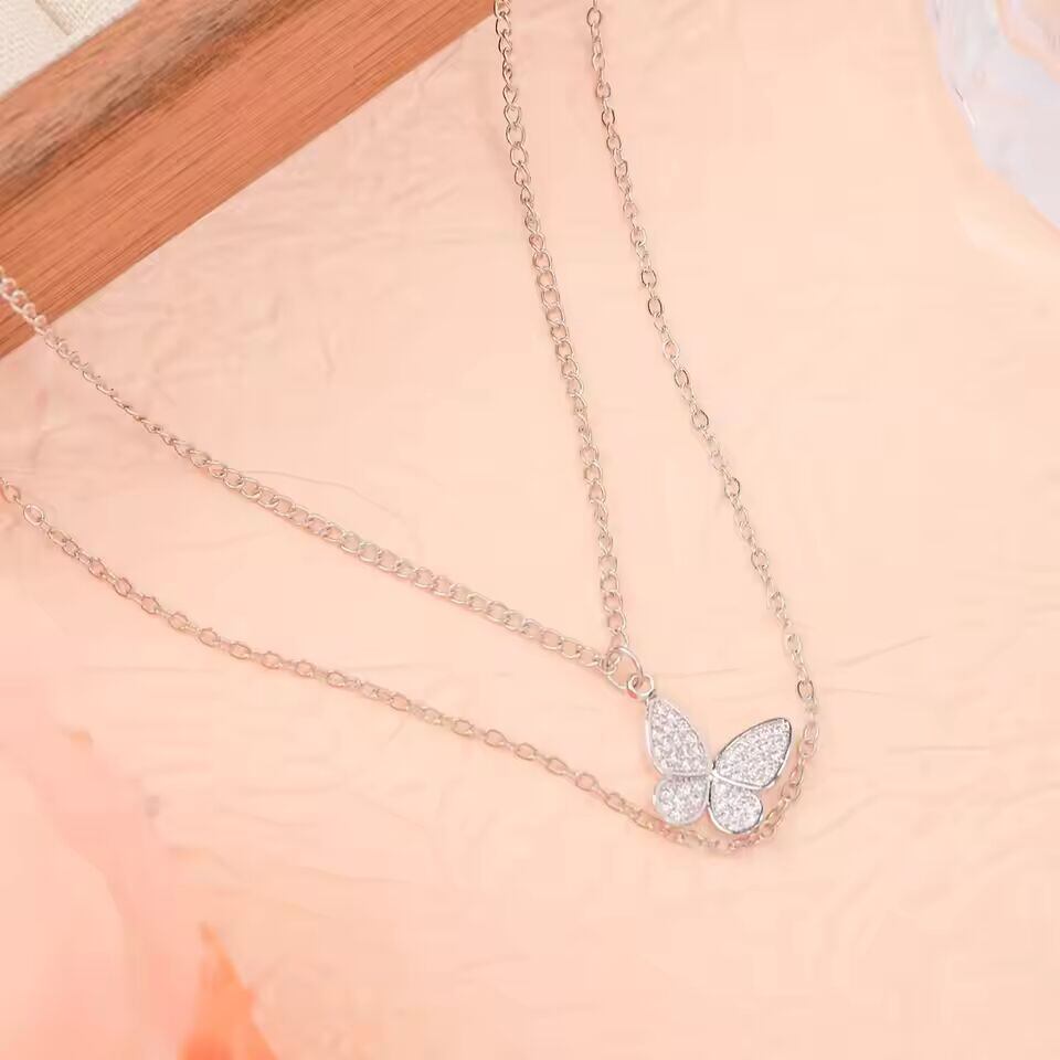 【送料無料◎】 新しい光沢のある蝶のネックレス レディース 上品な二重鎖骨チェーンネックレス ジュエリー 女性へのギフト