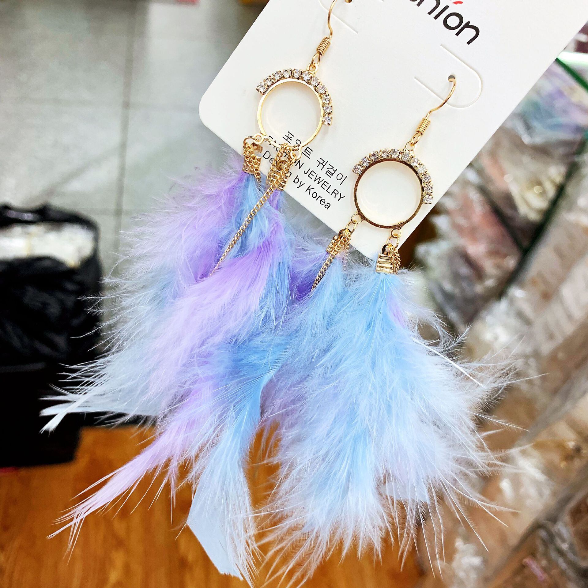 揺れ動くフェザーに視線を誘われる、存在感たっぷりのレディースピアス。