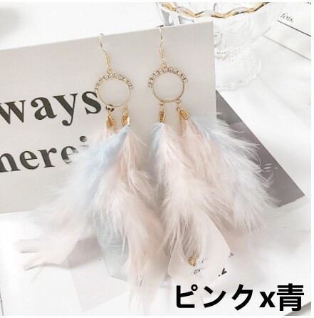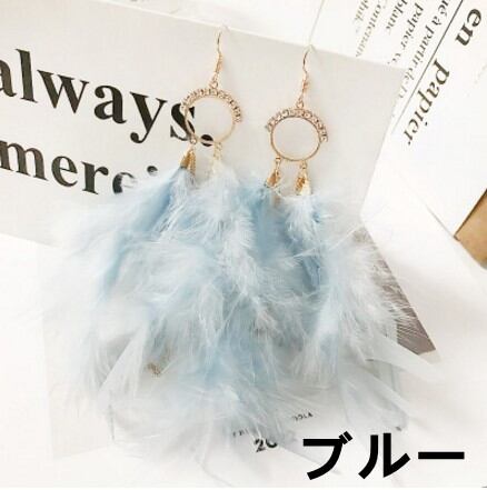 ◎【送料無料】フックピアス 大ぶり 大振り ふわふわ ピアス フェザー ふわふわ 揺れるピアス 派手 個性 変わった メタル