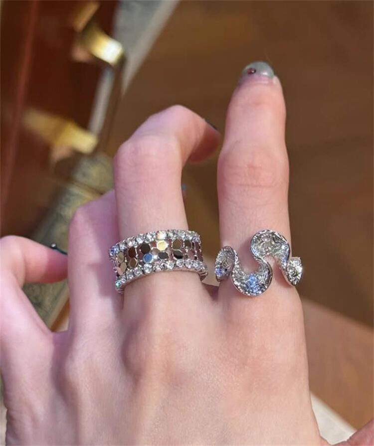 S925 純銀 オープン 幅広リング 不規則ウェーブ 人差し指リング