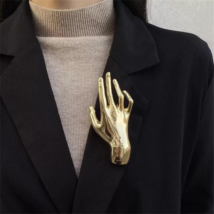 立体ハンドモチーフ ブローチ 2色 11*5.5cm 男女兼用アクセサリー