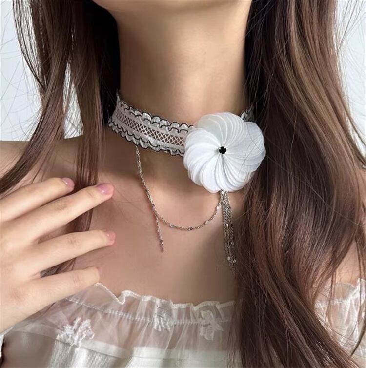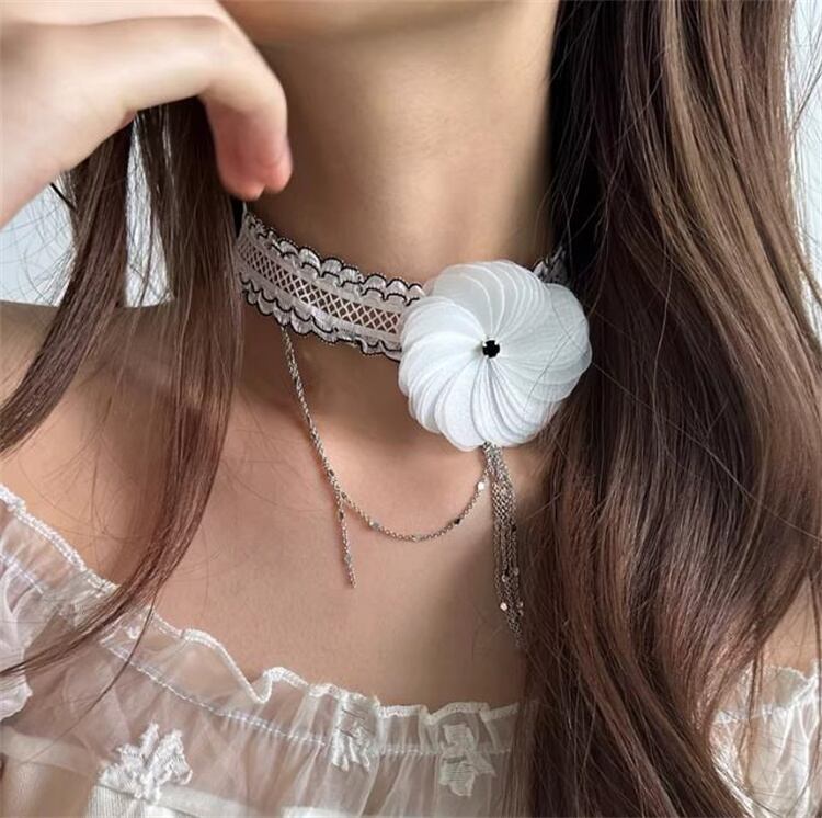 レースフラワー タッセルチョーカー 32cm エレガント レディース