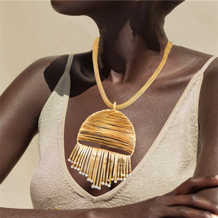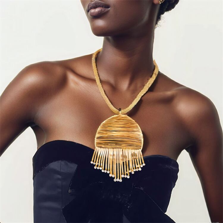 デートの夜や女子会の場合、このネックレスが「目立つための武器」!金色の光沢が灯光に反射し、きらきらと輝くようになる。フリンジが動くたびに、相手の視線を引き寄せる——ワンピースや露肩の服と合わせると、性感的で可愛いバランスが perfect。「何を着ても、このネックレスが主役」なので、服選びに悩む必要はない!まさに、「特別な日」を更に特別にするアイテムだよ。∽注意事項∽