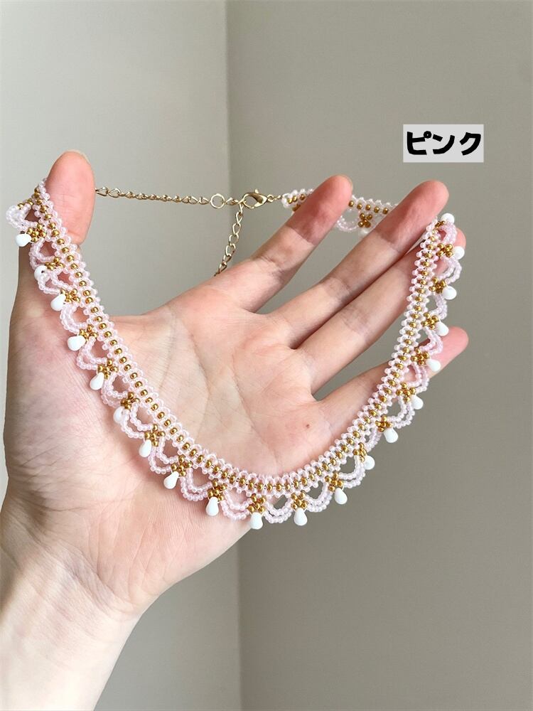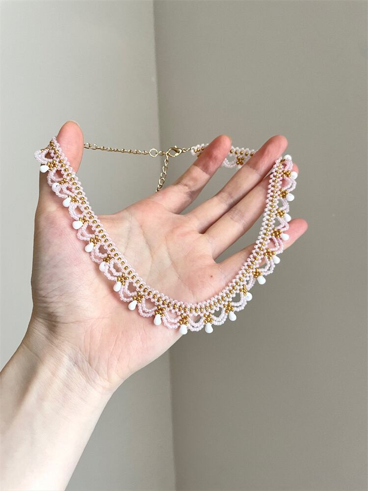 日常の小さな楽しみ——女子会、カフェ巡り、ショッピングなど、どんなシーンでも活かせる宮廷風小米珠ネックレスです。レースのフリンジが宮廷風の优雅さを添え、小米珠の細やかな輝きが高級感を加え、クラッシュカラーのデザインがシンプルなコーディネートを華やかにしてくれます。ブルーはカジュアルなデニムとの相性が良く、爽やかな休日スタイルを演出し、ピンクはセーターやリボントップと合わせれば、可愛らしい休日ムードを作り出せます。鎖骨ネックレスの長さが調整しやすく、どの体型の女性にもフィットし、長時間佩戴しても首に圧迫感がなく、全天快適に使用できます。手軽に着けられ、日常に小さな華やかさを添えてくれます。∽注意事項∽