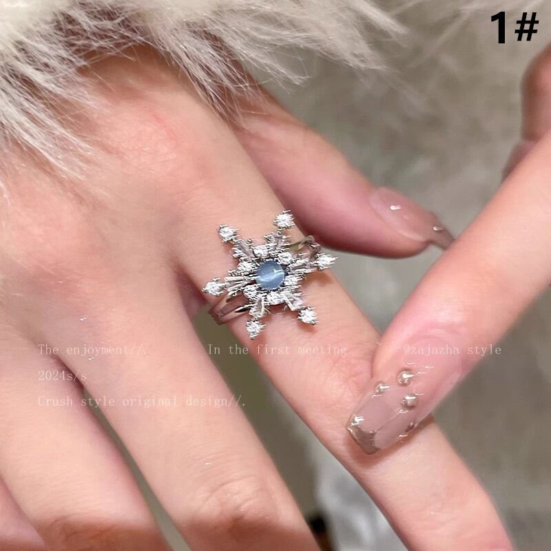 ◎【送料無料】雪花 ラインストーン 指輪 リング サイズ調整可能 デザイン アクセサリー レディースファッション オシャレ
