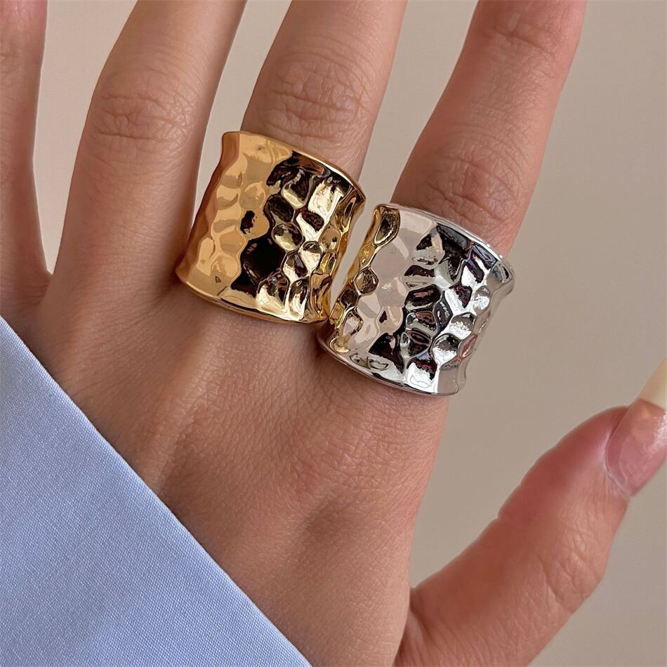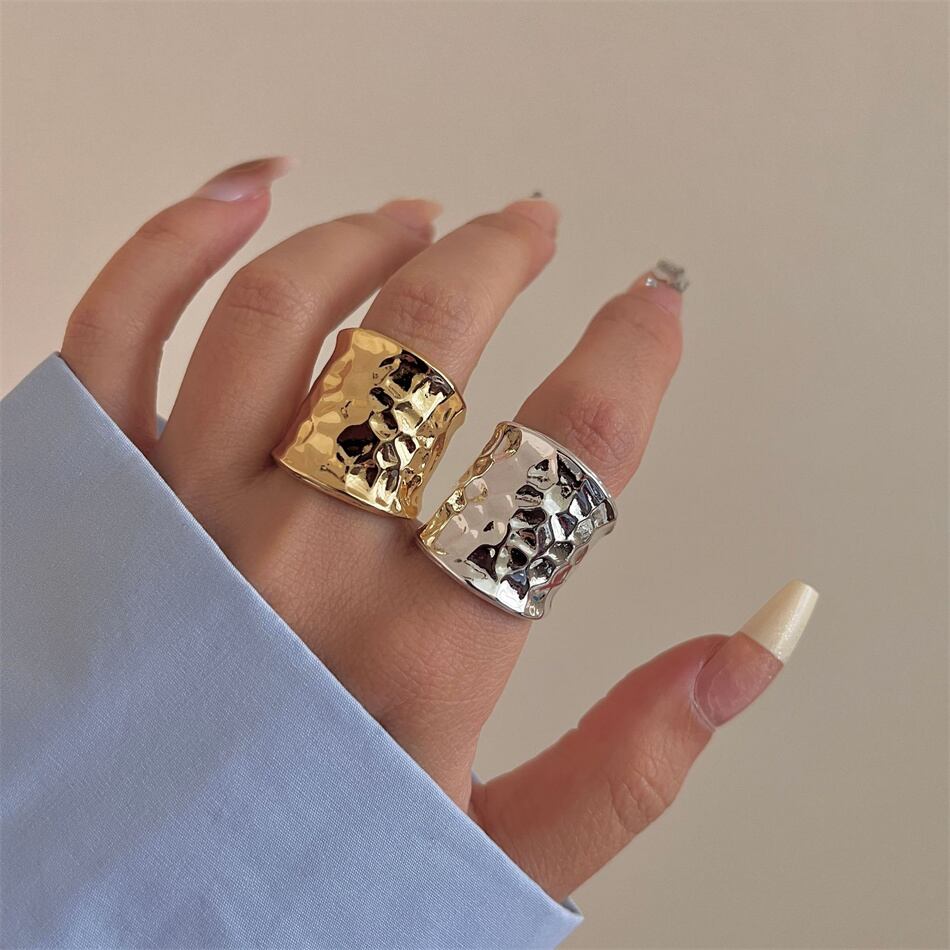 ◎【送料無料】幅広 水波模様 指輪 リング 開き指輪 開きリング デザイン アクセサリー 開口指輪 レディース