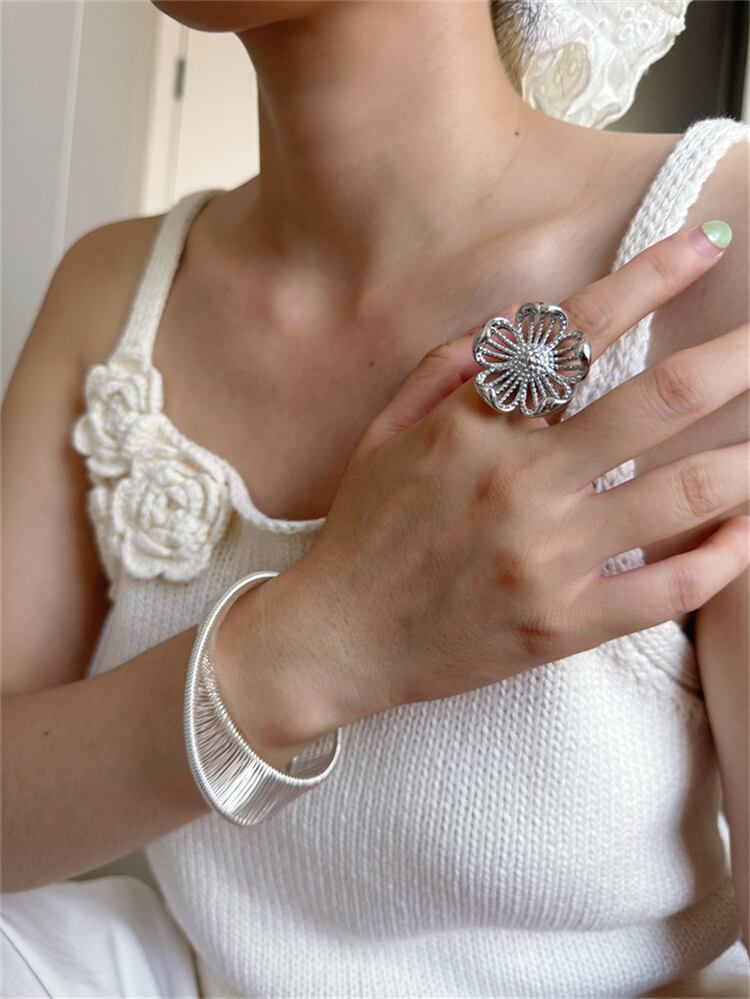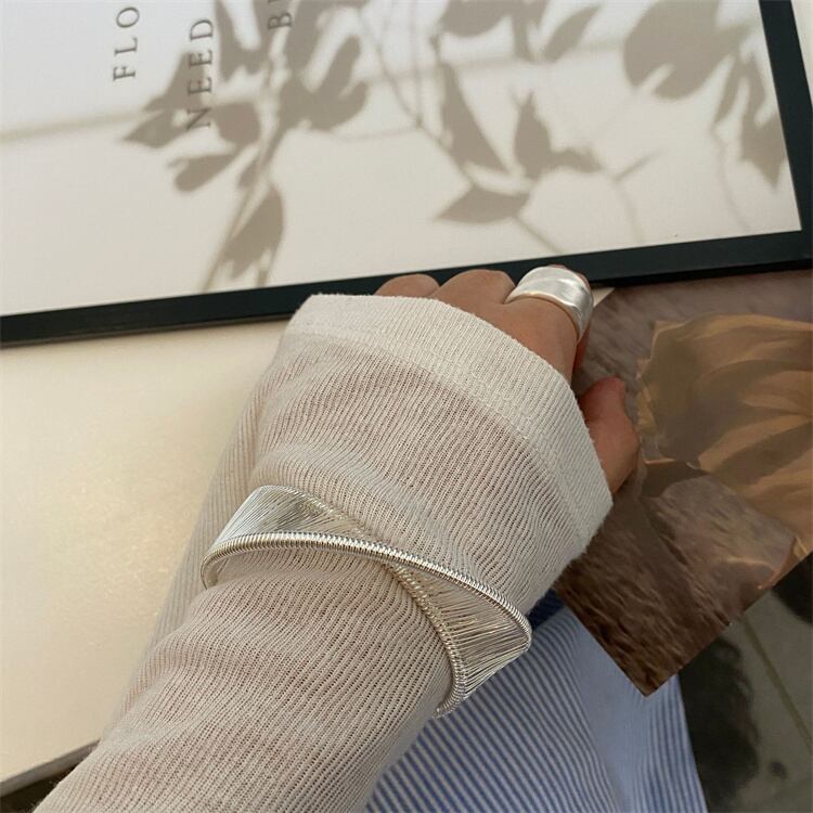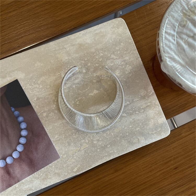 手首にふわっとフィットする銀色スパイラルブレスレット サイズ調節可能