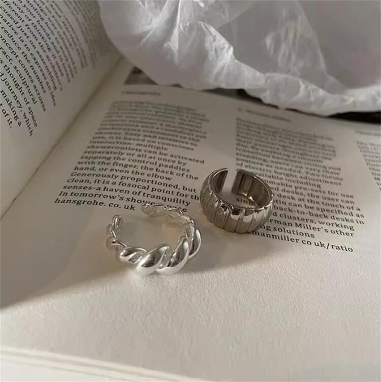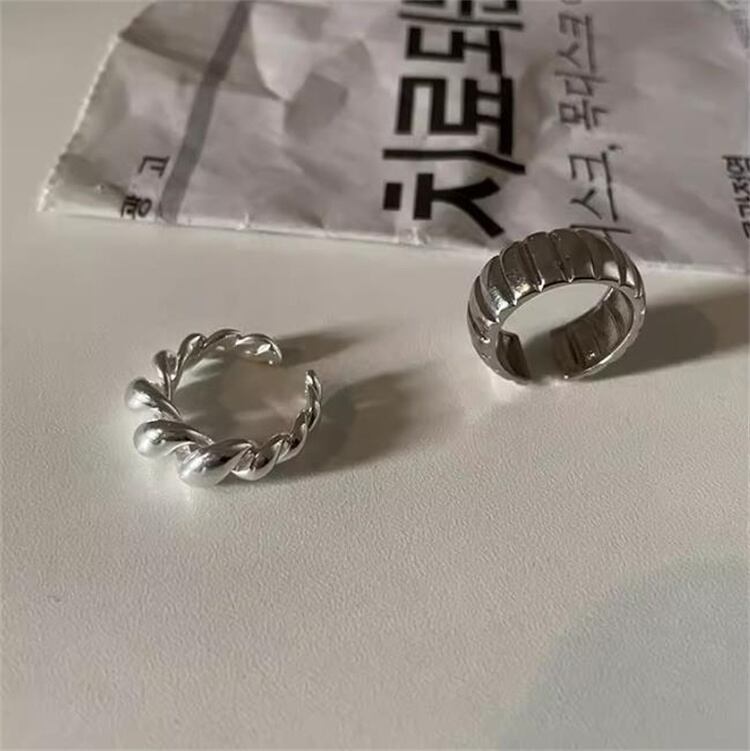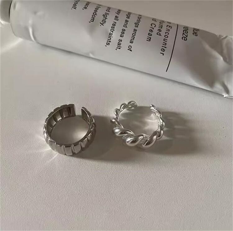 ◎【送料無料】女性用ツイストオープンワークリング レトロ縦縞デザイン アジャスタブルオープン ヒップホップ風