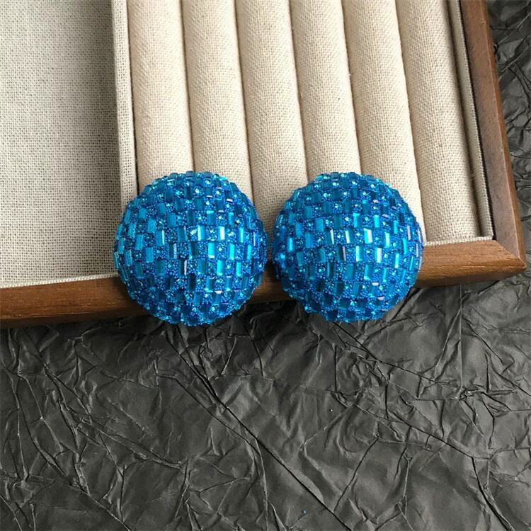 3色展開 全面ラインストーンの半球形ピアス レトロジオメトリックデザイン大ぶりイヤートリム(約4cm)