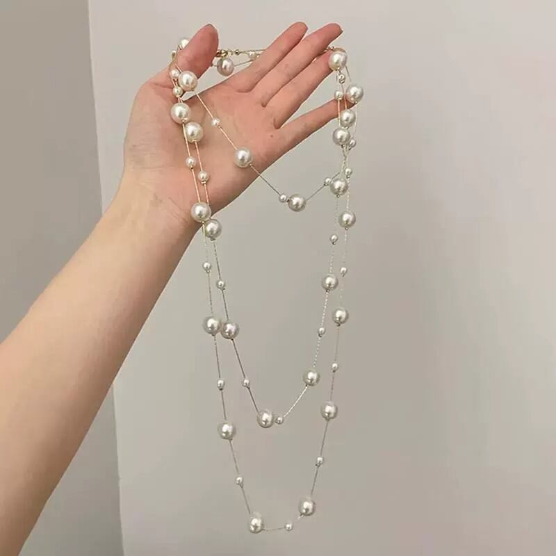 ◎【送料無料】パール 首飾り ネックレス 多層 アクセサリー ジュエリー 韓国風 ファッション シンプル