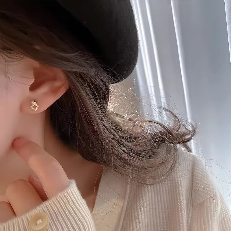 ◎【送料無料】14Kコーティング 幾何 ピアス 金属アレルギー対応 ラインストーン 925シルバー レディース ゆらゆら