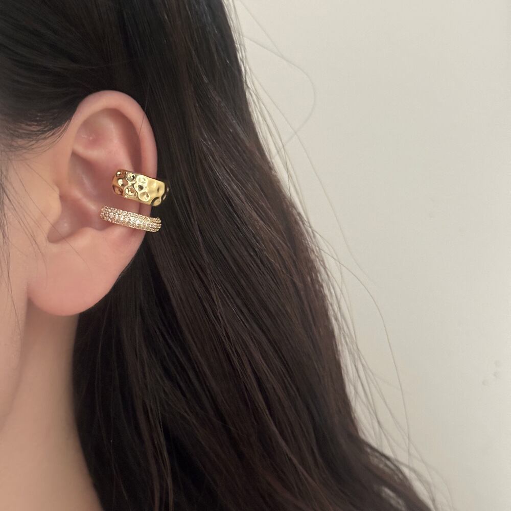 ◎【送料無料】二層 イヤーカフ 耳飾り イヤークリップ 片耳 ラインストーン 金属アレルギー対応 レディース