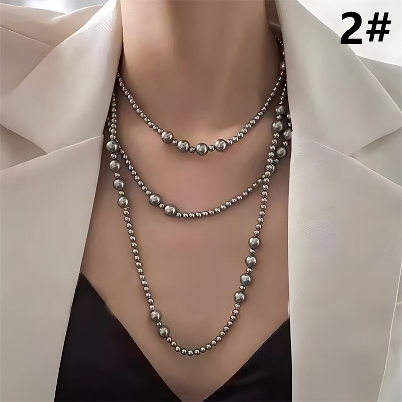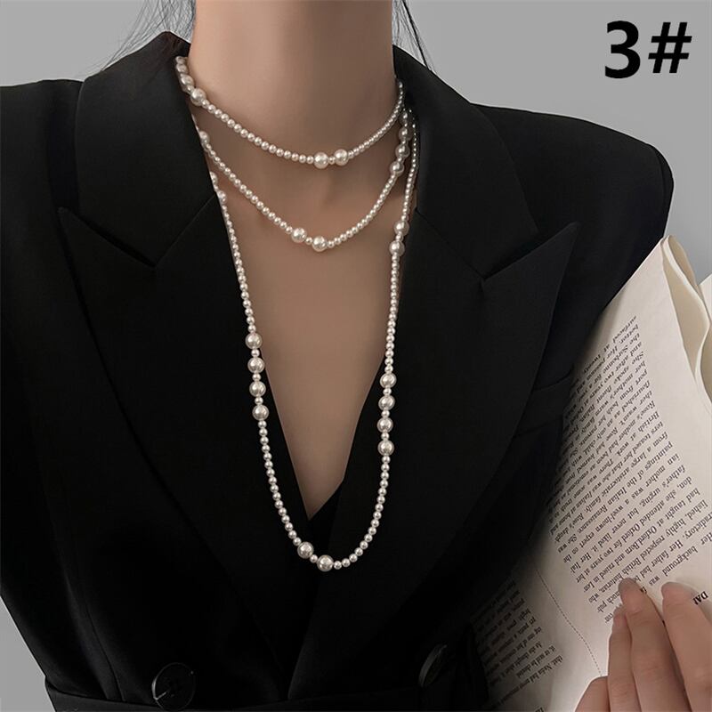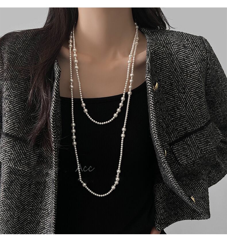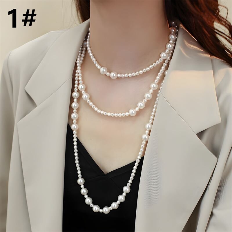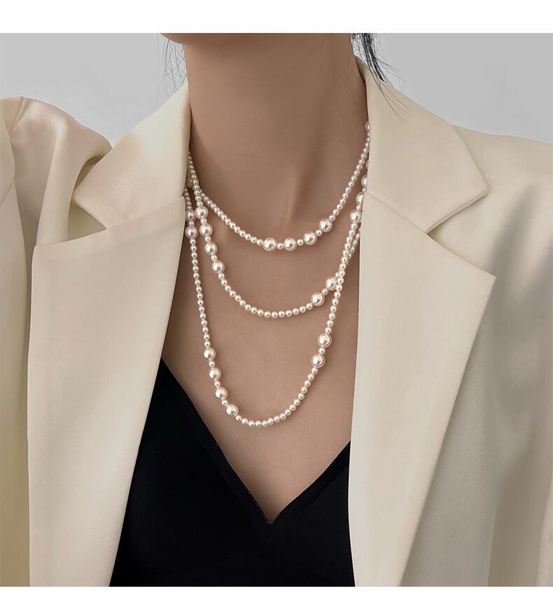 ◎【送料無料】パールネックレス ロングタイプ 重ね着 首飾り アクセサリー レディース レトロ風 オシャレ
