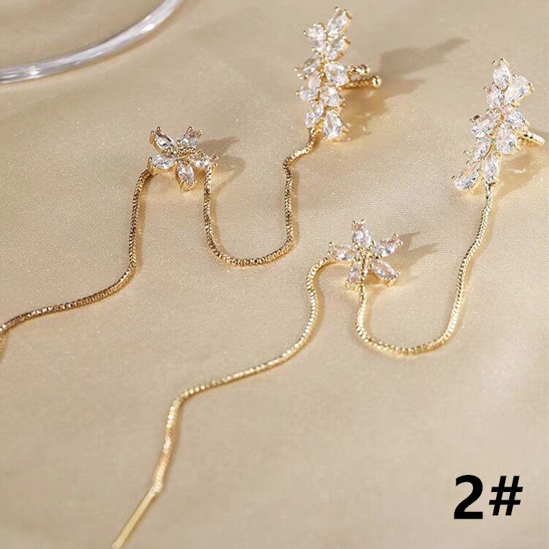 ◎【送料無料】花 ラインストーン イヤークリップ イアリング 片耳 フリンジ イヤーカフ レディース 耳飾り アクセサリー