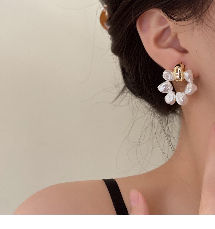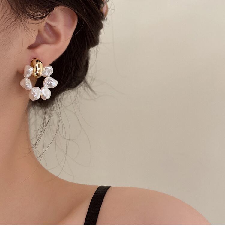 ◎【送料無料】レトロ調ふぞくい真珠ピアス 丸いリングの個性デザインで、女性へのプレゼントとして
