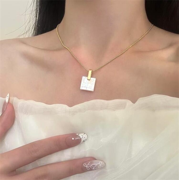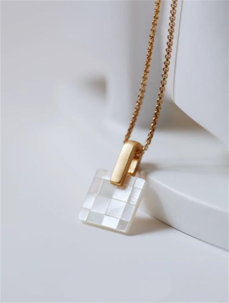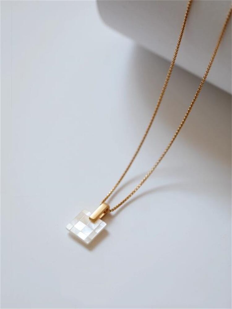 シンプルデザインの天然シェルネックレス 手作業で仕上げたマotherオブパール調ペンダント
