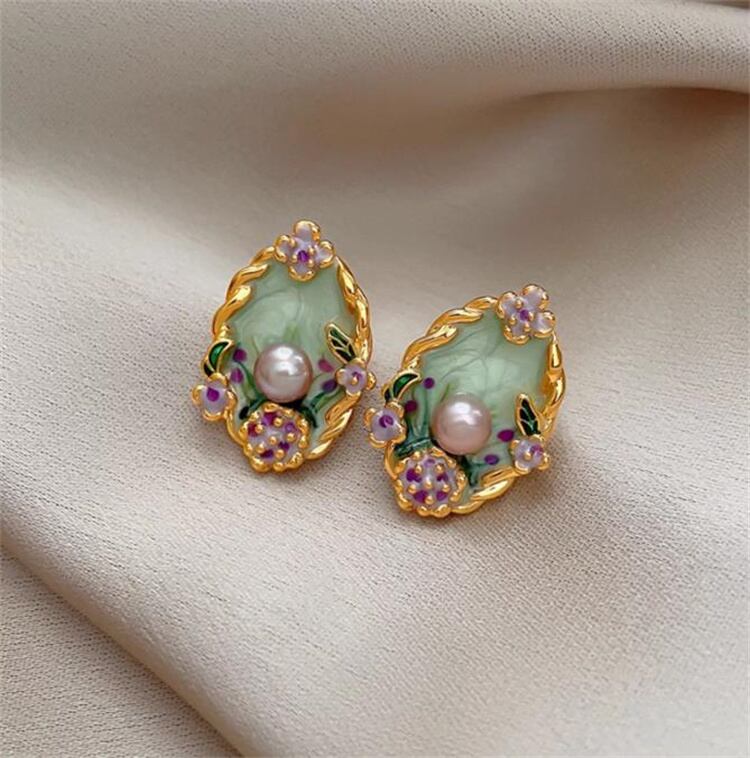 ◎【送料無料】2026年春新作パールピアス 絵画のような色彩と立体デザインが映える大人の耳元アイテム
