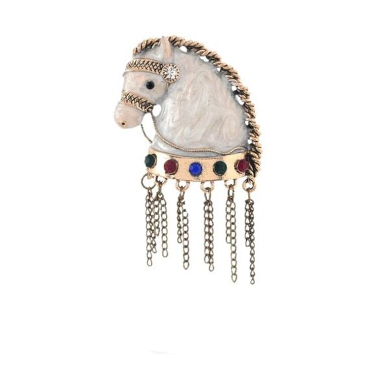 戦馬の立体彫刻に施した雲のような白釉は、光の加減で淡い虹色に輝く高級彩鑽と共に、和風の侘び寂び美学を現代に再解釈。職人が一本ずつ手結びした金糸の房は、歩くたびに優雅なシルエットを描きます。カーーディガンの襟元やバッグストラップに留めれば、シンプルコーーデに上品なアクセントを。オフィスカジュアルにも違和感のない大人可愛いアイテムです∽注意事項∽