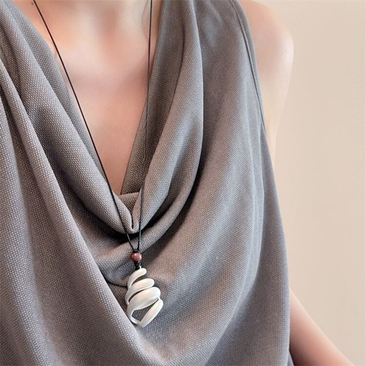 レトロシンプル 金属ネックレス 不規則スパイラル ペンダント コード式 アクセサリー