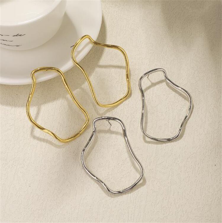 不規則幾何学デザインの大胆メタルラインシンプル耳飾り