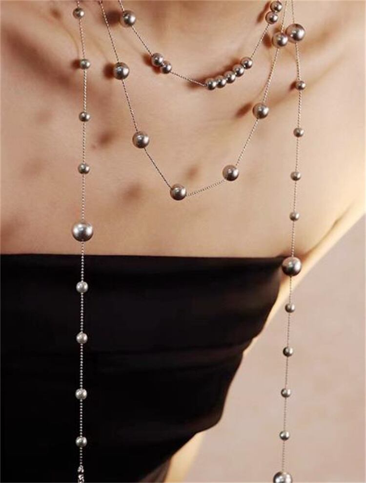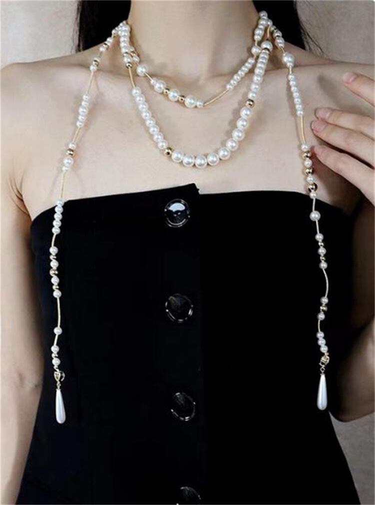 ◎【送料無料】フレンチテイストの大人可愛い 人工真珠の重ね付けネックレス 長短3連デザイン