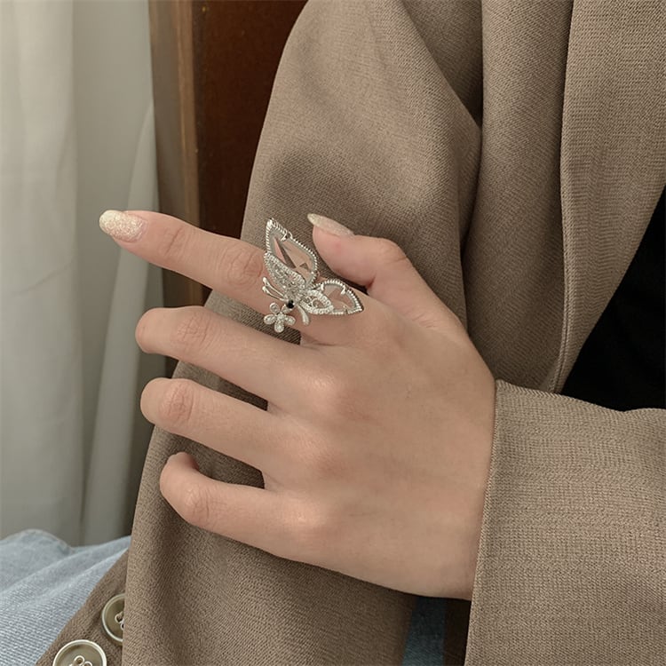 气质あふれるバタフライオープンリング;ファッション的で個性的なデザインで、手元を華やかに装飾。オープンタイプなので指の太さに柔軟に対応し、日常から特別な日まで活用できます。バタフライの可愛らしさが、あなたの魅力をさらに引き立ててくれます∽注意事項∽